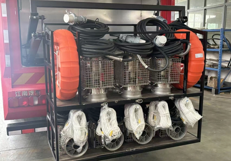 潛水泵配置:配備10臺(tái)便攜式潛水泵,單泵流量≥500m3/h,總流量達(dá)5000m3/h。