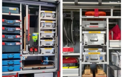 器材廂外骨架采用優質碳鋼板材、內骨架采用高強度鋁合金型材、采用內藏式搭接結構設計制作。內飾板采用花紋鋁板制作,表面經過陽極氧化處理,堅固耐用。在結構方面,器材廂布置合理、器材取用更加方便,特制夾具固定裝置使器材存放更加牢固。